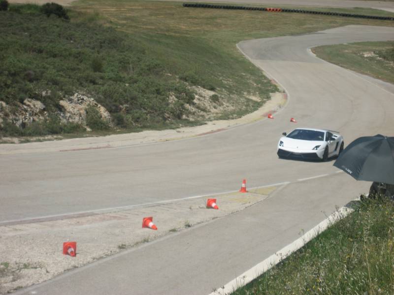 un stage de pilotage en Gallardo, de 8 tours chacun, sur la piste 2 de Ledenon.