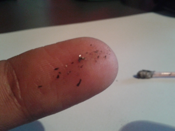 Alors après avoir démonté les bougies, la T du rotor avant a la tête toute pailletée, déjà là, je me dis, ouch c'est pas beau. Coup de lampe torche dans le puis de bougies, et en effet, pas mal de limaille très très fine.