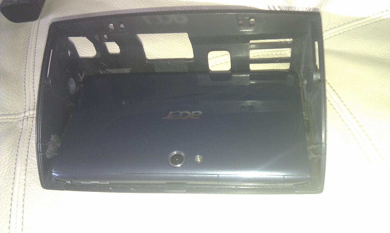 j'ai comméncé l'intégration de la tablette.... après avoir démonté en mille morceaux tout le module GPS, la première étape a consisté à placer la tablette en lieu et place de l'écran