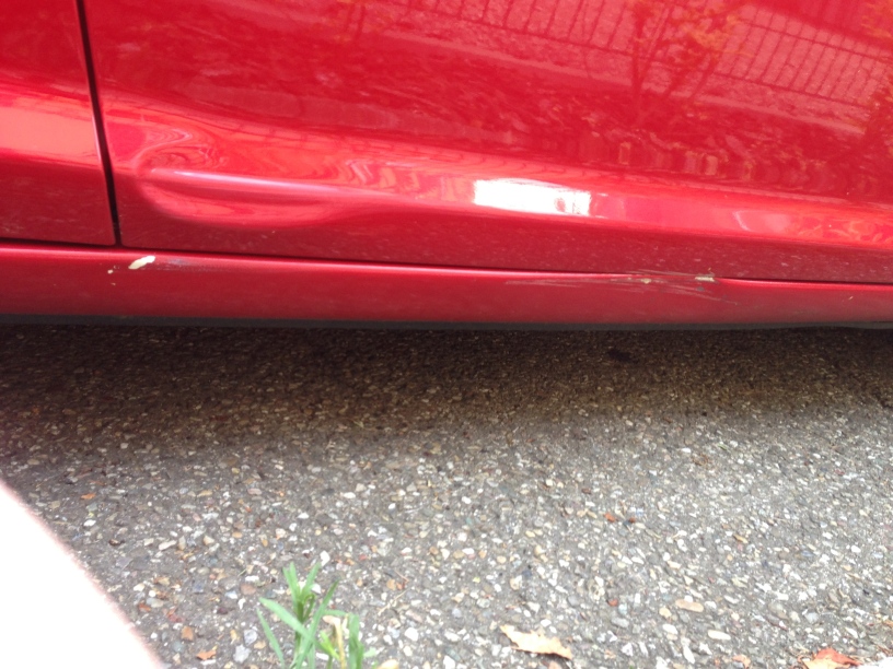 Pour ce qui est de la "légère bosse", y'a effectivement pas que la bosse.... Pas catastrophique, mais la peinture à l'air d'avoir pris un bon coup quand même :??: