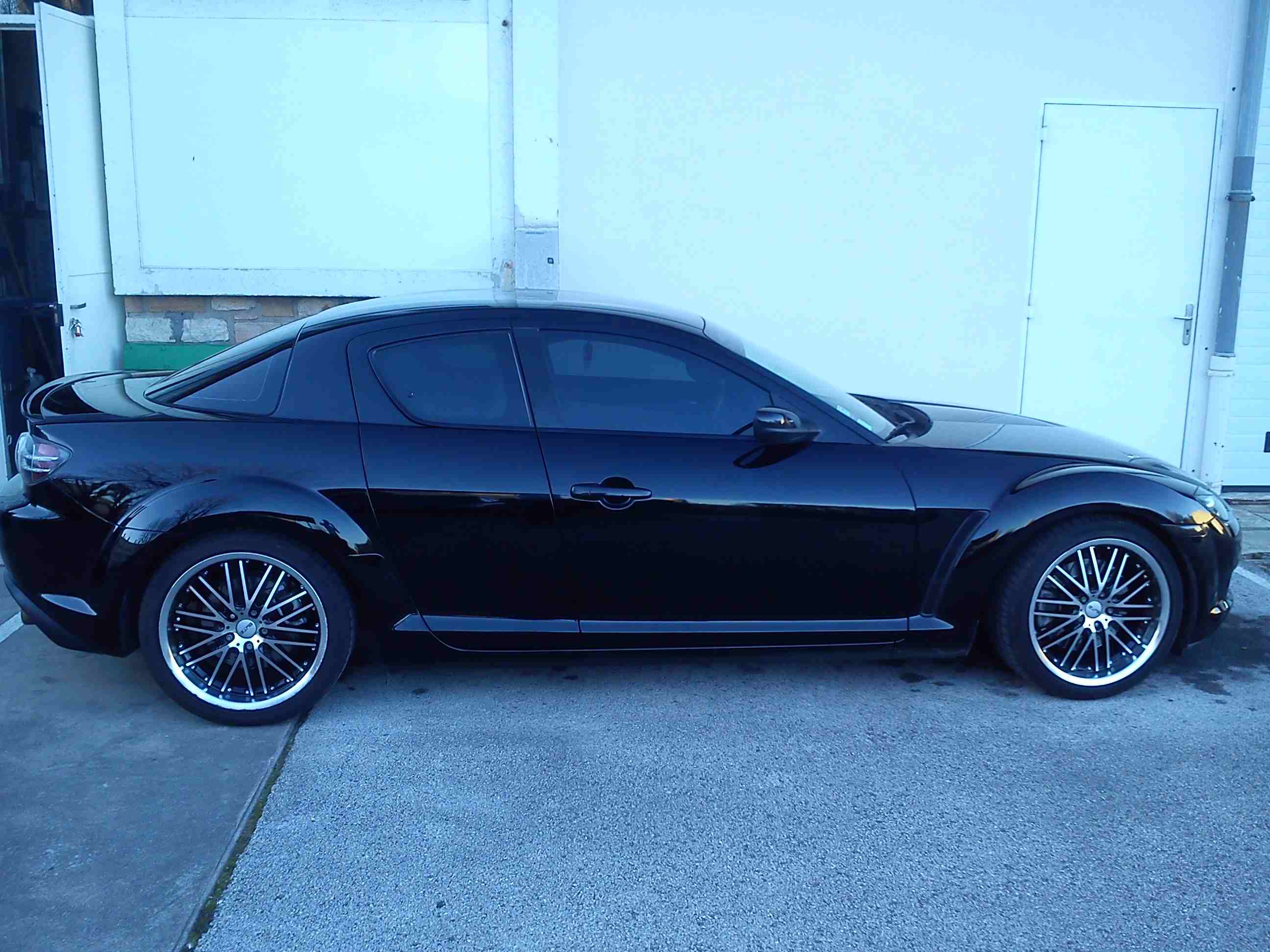 Je roule donc et enfin avec une Rx8 de novembre 2006 édition Kuro venant d'Allemagne en LHD de 192 ch totalisant 106 000Km (ça commence à faire mais bon, j’espère malgré tout l’emmener loin). Elle est décata, rabaissée, désiglée et repeinte en décembre 2012 car la peinture commençais a cloquer...