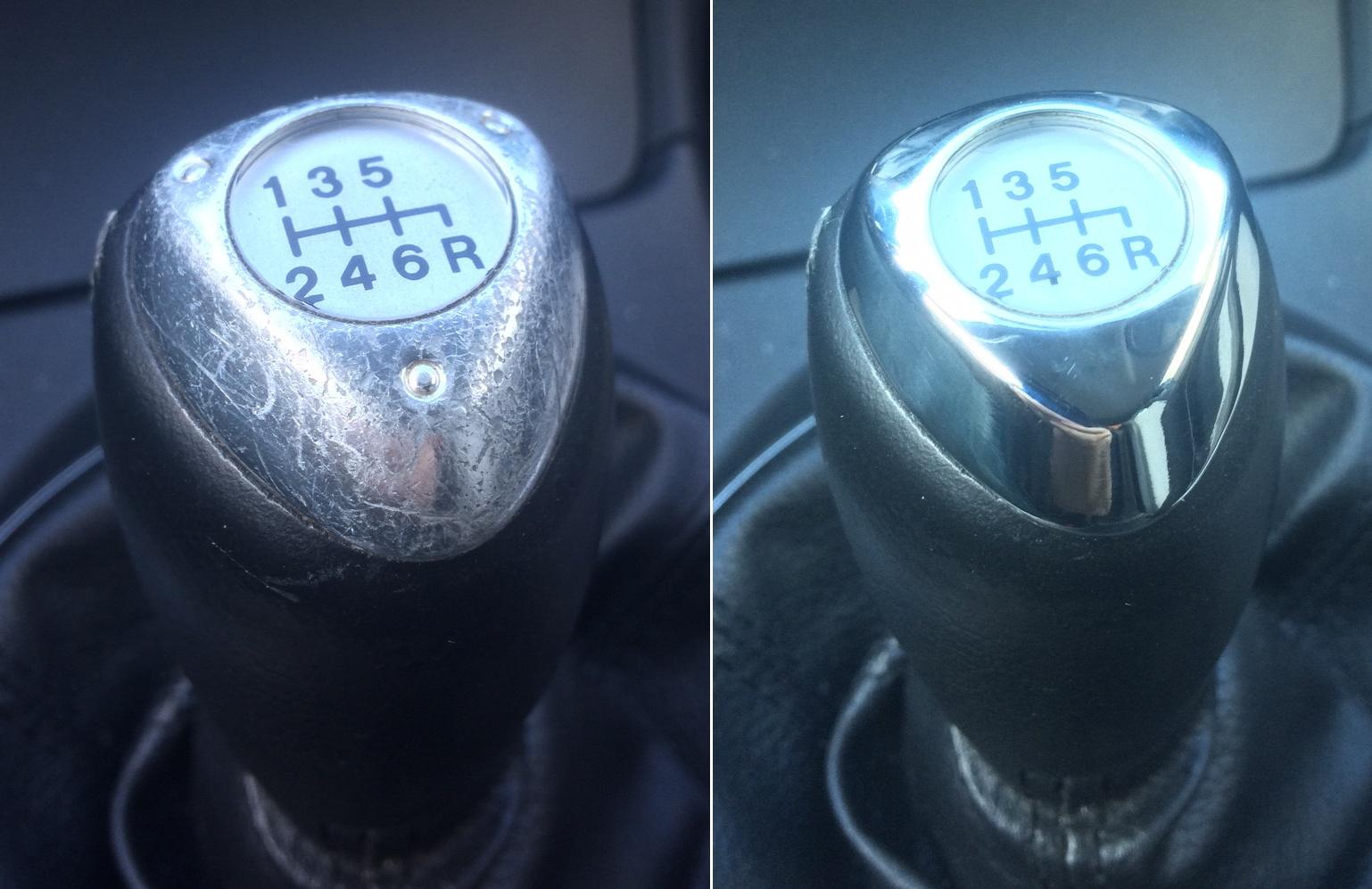 Le propriétaire précédent avait une chevalière qui a massacré le pommeau comme vous pouvez le voir (quelle autre explication?), et comme il est difficile de trouver un beau pommeau d'une 231 (et il n'y a que la partie haute qui est abîmée...), et bien j'ai trouve ce petit couvercle très joli, fin (il se colle simplement par dessus), fort bien fini, pas cher, et qui donne un gros coup de jeune a l'ensemble: