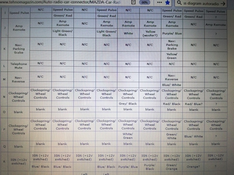 Dans le cas où vous voulez partir sur un connecteur femelle Mazda ayant tous les picots nécessaires à TOUTES vos fonctions nécessaires partez sur cet adaptateur et récupérer le connecteur en question ( type 70-7903) dans ce harnais : MAZDA 2 3 5 6 323 626 PARROT BLUETOOTH ISO T-HARNESS WIRING MUTE LEAD SOT-077