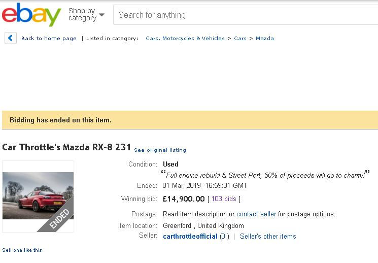Sinon les enchères sont terminées et la RX-8 Car Throttle est partie à £14900 (environ 17300 €)