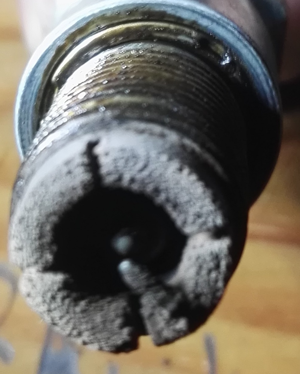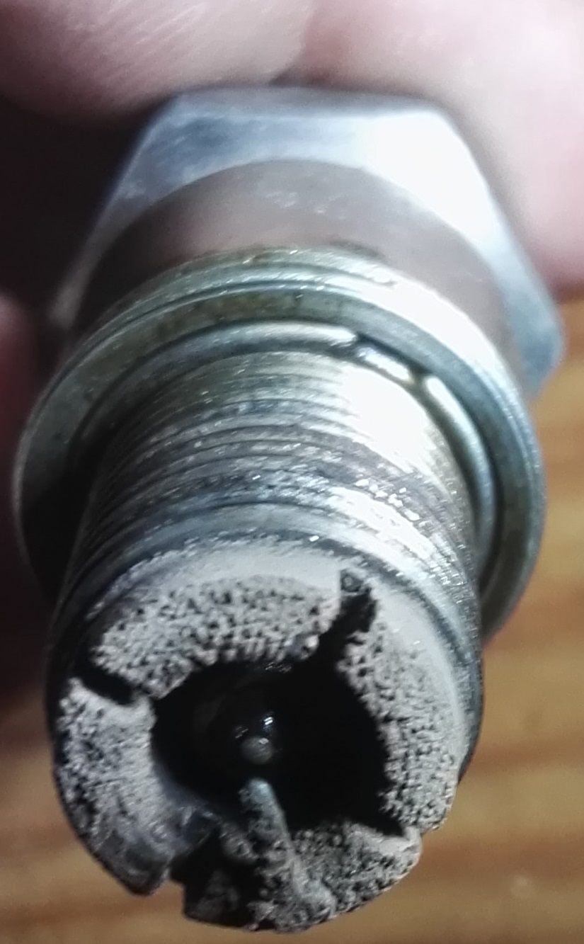 Ensuite je me suis dit que tant que j'étais a autant vérifier les bougies !et la je suis assez perplexe ! :fou: je ne suis pas expert mais elles me paraissent pas en super état pour des bougies à 9000 km... :oups: