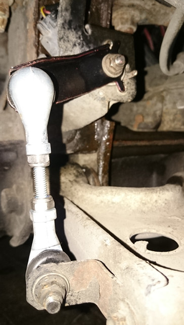 J'ai mesuré 85mm entre les deux axes, et il y a 30mm entre l'axe et l'extrémité de la rotule. Il fallait donc 25mm entre les deux rotules (85 - 2 x 30 = 25), plus 10mm de tige à l'intérieur de chaque rotule. J'ai donc coupé 45mm (25 + 2 x 10 = 45) de tige filetée. Vous suivez ?