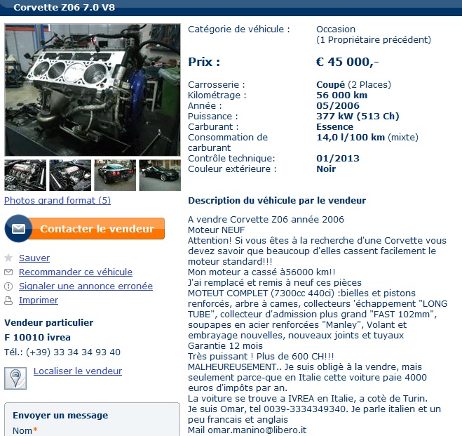 oli40000 a écrit :Pour les moteurs je m'en fait pas trop. Je connais déjà une bonne adresse (une connaissance à Damian).