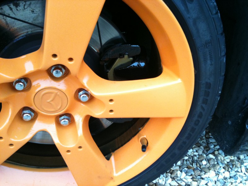 Petite apm tranquille. j'ai repeint mes étriers de frein en noir avec un kit foliatec, et j'en ai profité pour monter mes 4 belles jantes orange....