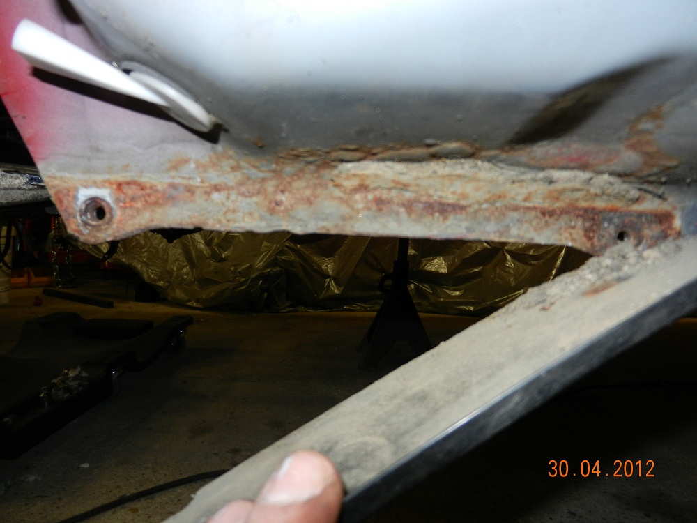 Le côté passager a lui aussi été démonté mais était moins fortement attaqué car l'aile a déjà été remplacée avant que j'achète la voiture, mais c'était bien rouillé quand même.