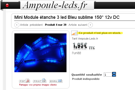 Sinon y en a de nouveau en stock et moins cher sur le site de ces leds.