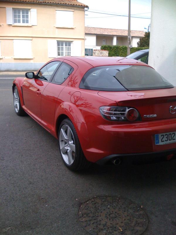 Et voilà cette fois c'est fait. Je suis l'heureux propriétaire d'une RX-8 red velocity de juillet 2006 et 192 CV et 10000 km. Je vais enfin pouvoir dormir tranquille, enfin que d'un oeil vu qu'elle fait dodo dans la rue (pas de garage dans ma rue). Bon il faudra que je retourne au garage récupéré mes tapis de sol et faire un ajustement sur la finition. Sinon déja fait 40 km à faire des essais avec la famille. Que du bonheur pour le moment.