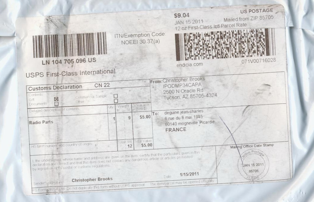 le paquet contenait un module mp3/ipod pour la corvette, d'une valeur de 200$