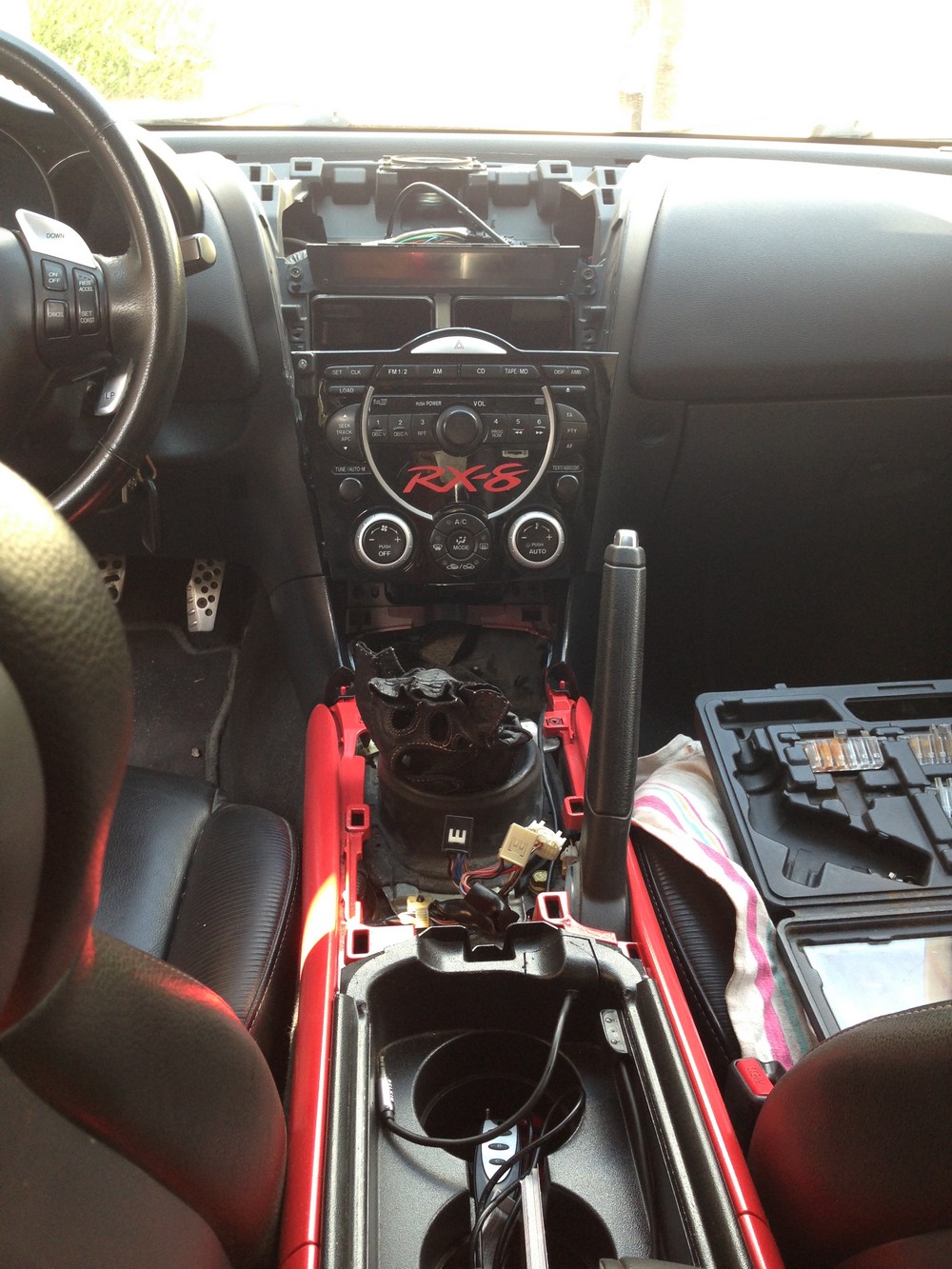 J ai ensuite connecter le boîtier sur l auto radio en passant un câble aux dans la console centrale puis le câble pour l iPad au niveau du tableau de bord. J ai ensuite retirer l écran GPS et fais les deux entailles pour l iPad j en ai profiter pour vernir les plastiques puis tout remonter.