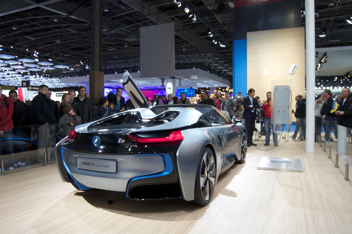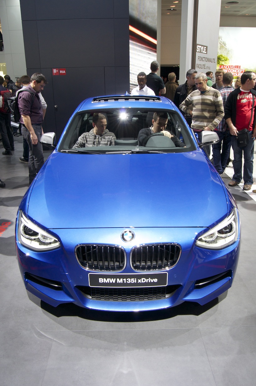 Passage ensuite chez B-M-Double-Vé. Autant Les voitures restent accessibles (mais pas les missiles M5 et M6), et ils exposent la i8 qui me plait beaucoup aussi. Une très belle 335i avec accessoires performances me fait de l’œil.