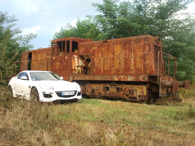 Une rx8 devant un train rouillé ![]()