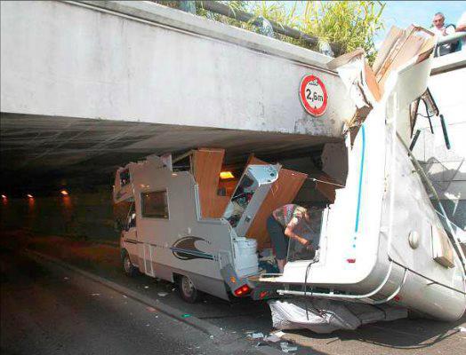 J'ai eu la meme au boulot, un mec sort de nos locaux (avec un camion de loc), il passe sous le tunnel (1,90 de haut) le camion lui était plus haut...
