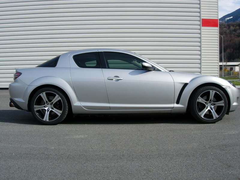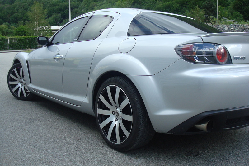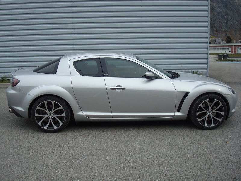RX8 sunlight silver EP 192 ch 2004, cuir noir, tapis rx8, vitres glastint carbone light et super, pillars rx8, jantes Lazaro Azelio Black diamond alu poli 8,5x18 ET35, pneus kumho KU31, door handles chromées, catback Toyosports.
