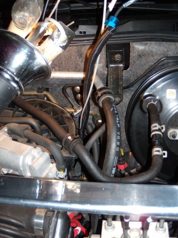 on coupe la durite pour ensuite placer correctement le tout. L'accès n'est pas facile, mais il n'y a pas de difficulté majeure. Pensez à bien serrer les colliers pour éviter toute fuite!!