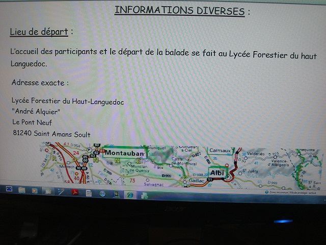 J'ai bien aperçu ton MP concernant mais je n'y a pas répondu sur le coup car il me semble que c'est encore sur la montagne noire et sur le coup j'ai pensé que je mettais trompé de date car j'avais en tête la date du 18 Avril. Mais non, c'est encore une autre sortie encore plus proche mais là c'est trop rapide, même si j'ai beaucoup aimé notre dernière sortie avec Estelle vers Montauban.