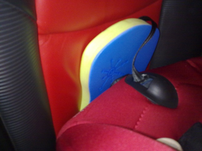 j'ai du faire une magouille pour eviter que la grosse roulette rentre dans le cuir. pour info c'est une planche à nager pour enfant dans laquel j'ai fait un trou pour passer la molette :D