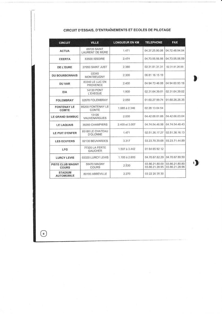 voilà la liste des circuits autorisés FFSA.