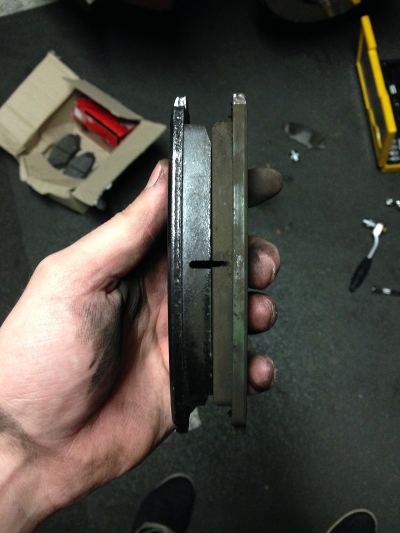 J'ai donc commandé de nouvelles plaquettes pour faire le changement et je me suis aperçu, à mon plus grand étonnement, que mes plaquettes actuelles (qui font du bruit) sont encore en bon état ! ![]()
