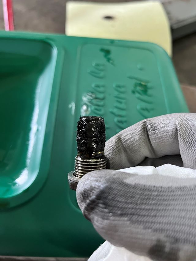 Il y avait un peu de pate grise sur le petit bouchon de vidange donc je suppose que c'est la première fois que la boite se fait vidanger ...
