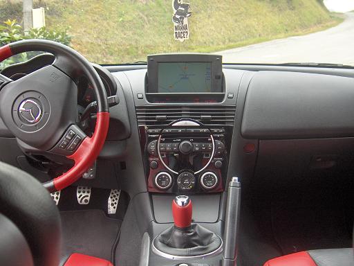 Concernant les options, il y a donc le GPS, les tapis de sol RX8, un spoiler devant, les rétros sports, les ailettes latérales, le mini spoiler sur le coffre plus 2 ou 2 trucs à l'intérieur.
