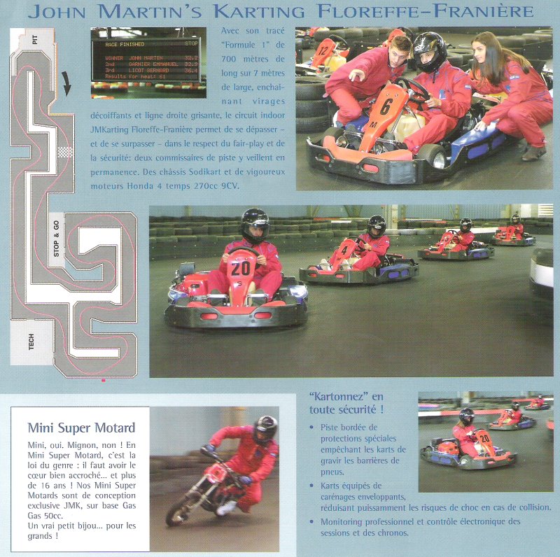 Très chouette circuit intérieur (700metres), excellents karts (moteurs honda 4 temps, très bon état et très bonne tenue de route) et une très bonne organisation (Numéro d'équipages tirés au sort, scéance d'entrainement et qualifs, karts équipés de transpondeurs, affichage des positions sur grand écran, panneautage, présence de signaleurs avec drapeaux,...).