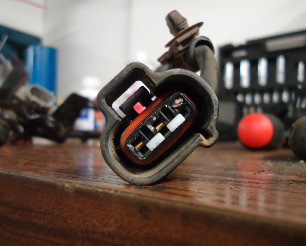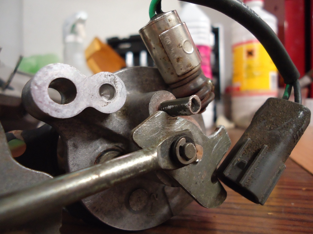 J' avait oublié de vous montrer l'état du capteur de hauteur de caisse avant, première mauvaise surprise à la déconnexion de la fiche sur le boitier, une cosse cassée ![]()