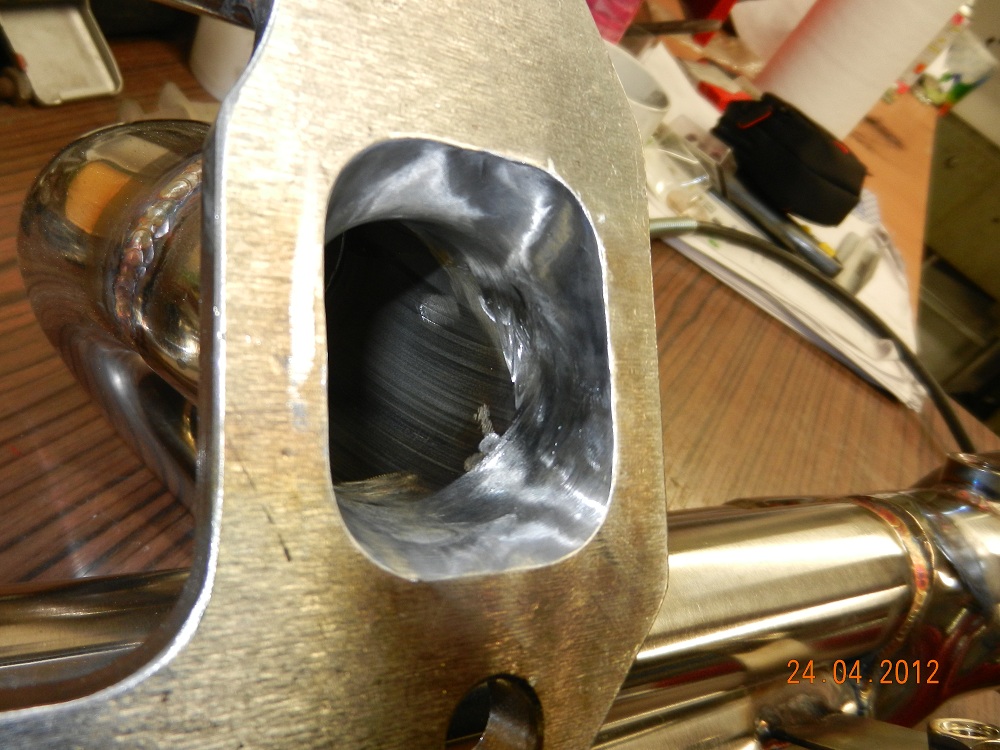 Comme j' avait le matos sous la main, j'ai pas pu résister à mettre un coup de dremel dans le collecteur d'échappement pour adoucir le passage