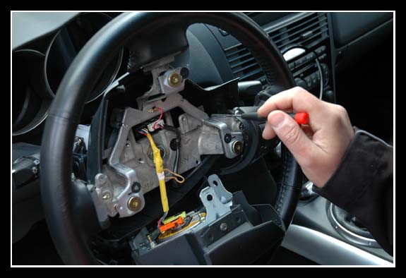 Retirer le cache sous le volant à l'aide d'un gros tournevisses cruciforme.