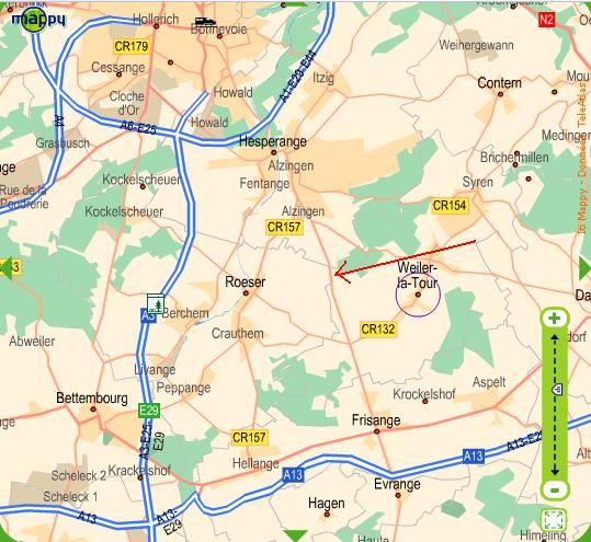 C'est la route qui relie Frisange à Hesperange. Le Pahia est situé là où pointe la fleche sur la carte.