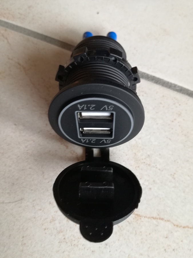la double prise din. Peut être dans le deuxième compartiment rangement à l'arrière avec un 12V permanent si possible.