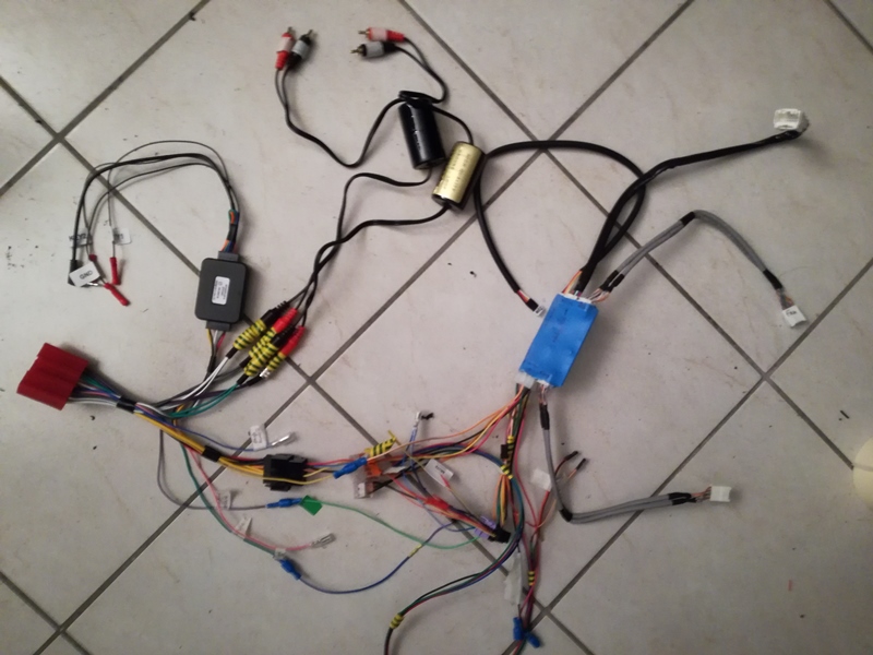 Le harnais côté Metra, récepteur de caméra et fils alimentant le bloc GPS/Nexus