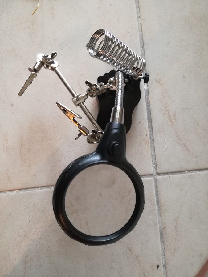 Bon alors petite astuce : normalement tous les fils arrivent du même côté ce qui est casse pieds car on a besoin généralement qu'il en arrive au moins un du côté opposé aux autres. Très simple vous faites un trou avec la panne du fer à souder bien chaud et c'est plié (agrandissez la photo, vous verrez de quoi je cause).