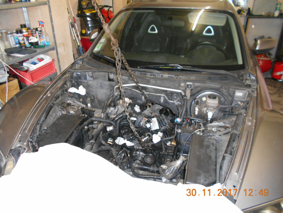J'ai commencé à démonter le groupe d'admission d'air, alternateur batterie, et déboiter les tuyauteries, enfin beaucoup de choses...